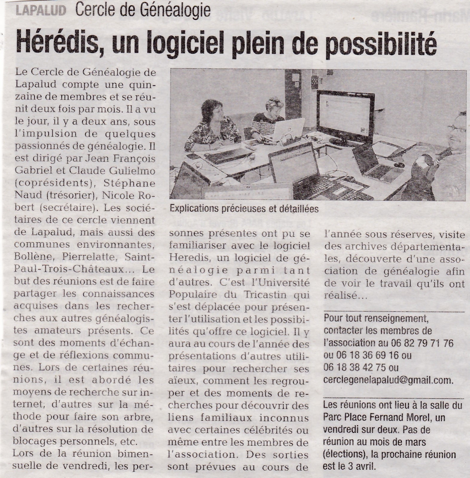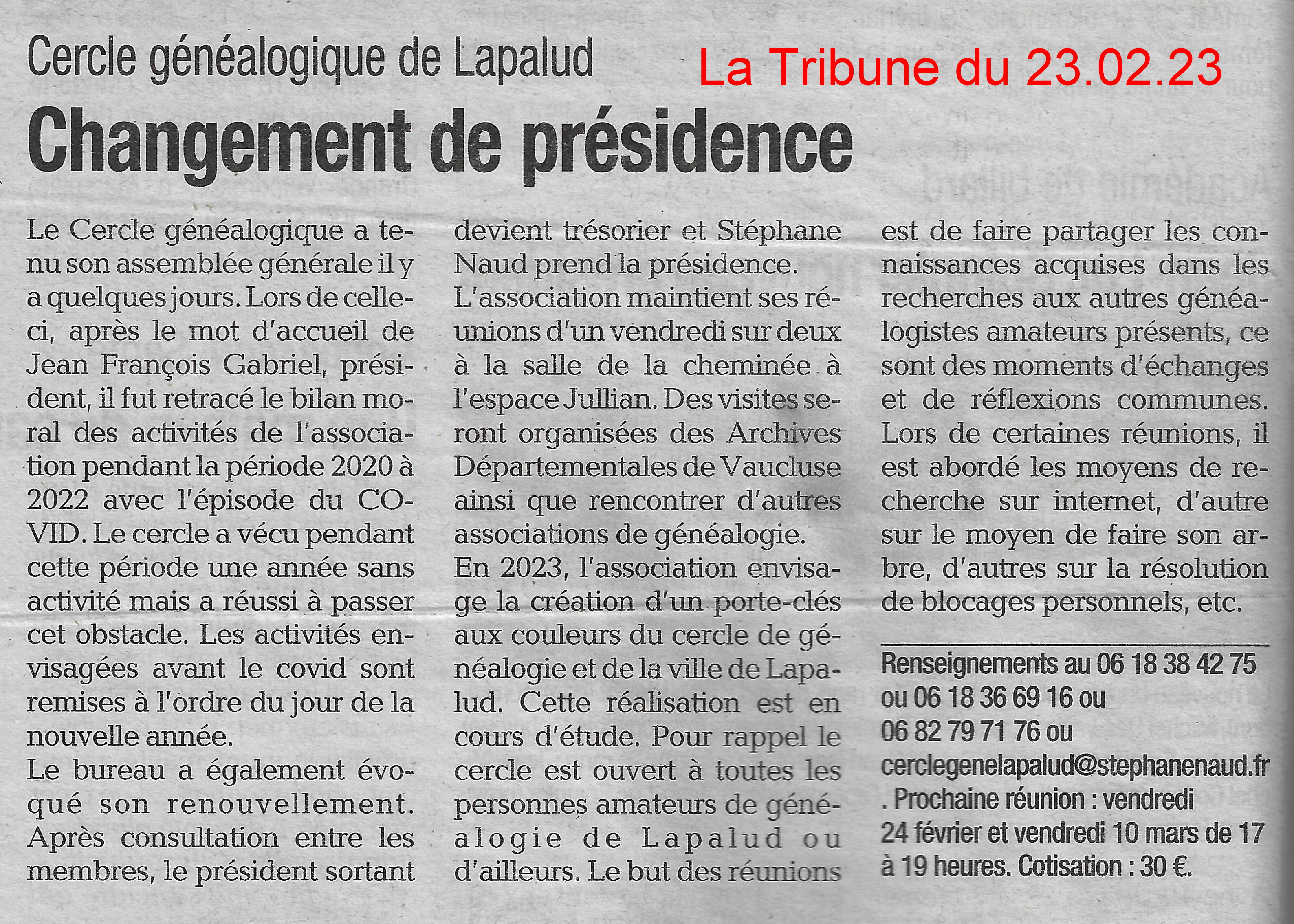 Articles de presse et Photographies (Crédit photos: DL, La Tribune, Mairie de Lapalud, ...)